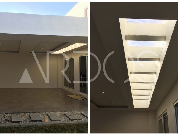 La remodelación de la Residencia San Ángel en la Zona 2 transformó un espacio tradicional en un hogar luminoso y moderno. Nuestra intervención se centró en la optimización de la luz natural, integrando lucernarios de policarbonato y un diseño de cocina con gabinetes blancos y mosaicos que aportan frescura. La renovación de la pérgola con cielo falso e iluminación empotrada extendió el espacio habitable al exterior.
